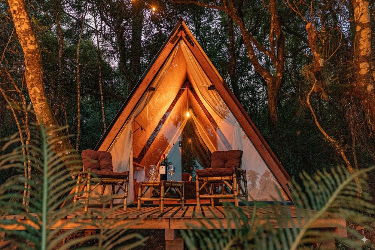 Cabanas rústicas com conforto moderno, pensadas para uma imersão completa na paz e na natureza.