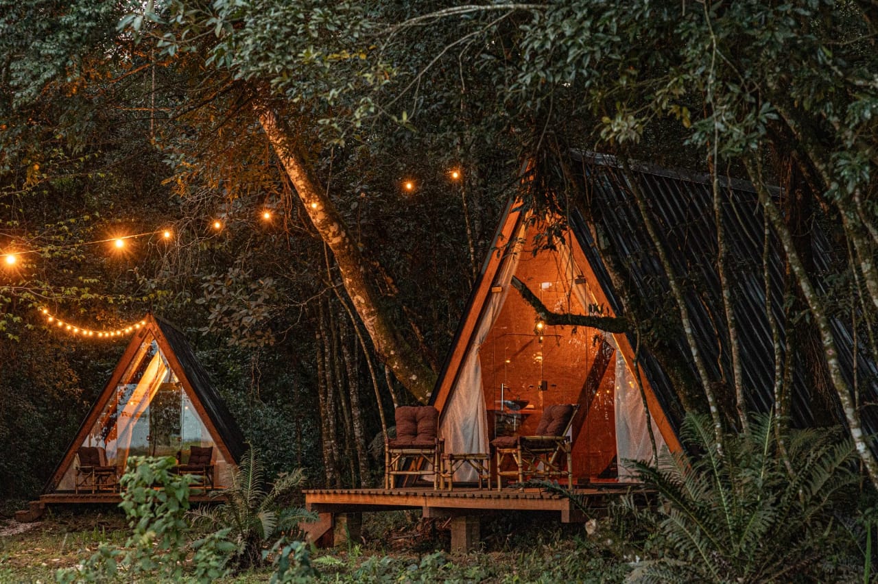 Cabanas rústicas com conforto moderno, pensadas para uma imersão completa na paz e na natureza.